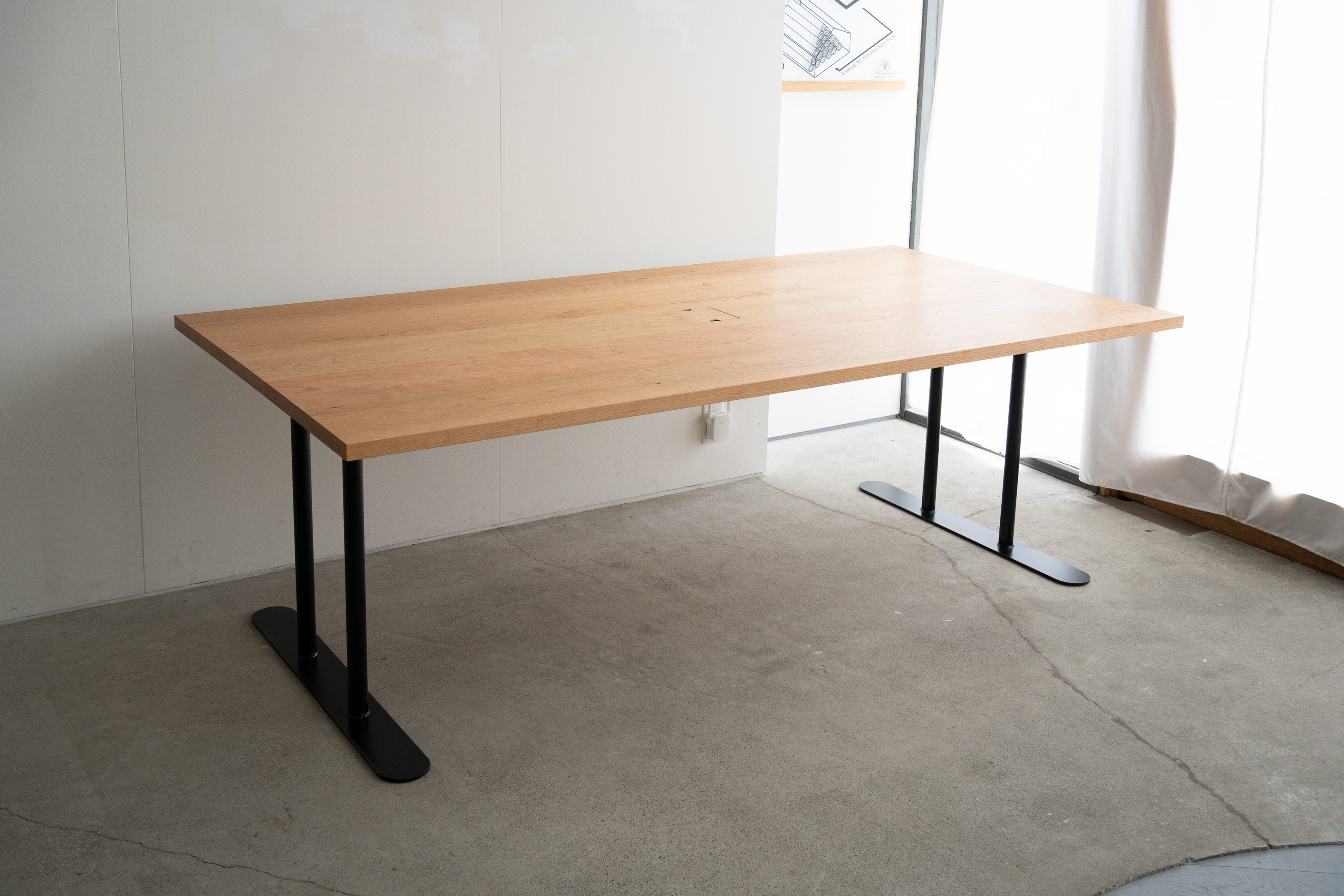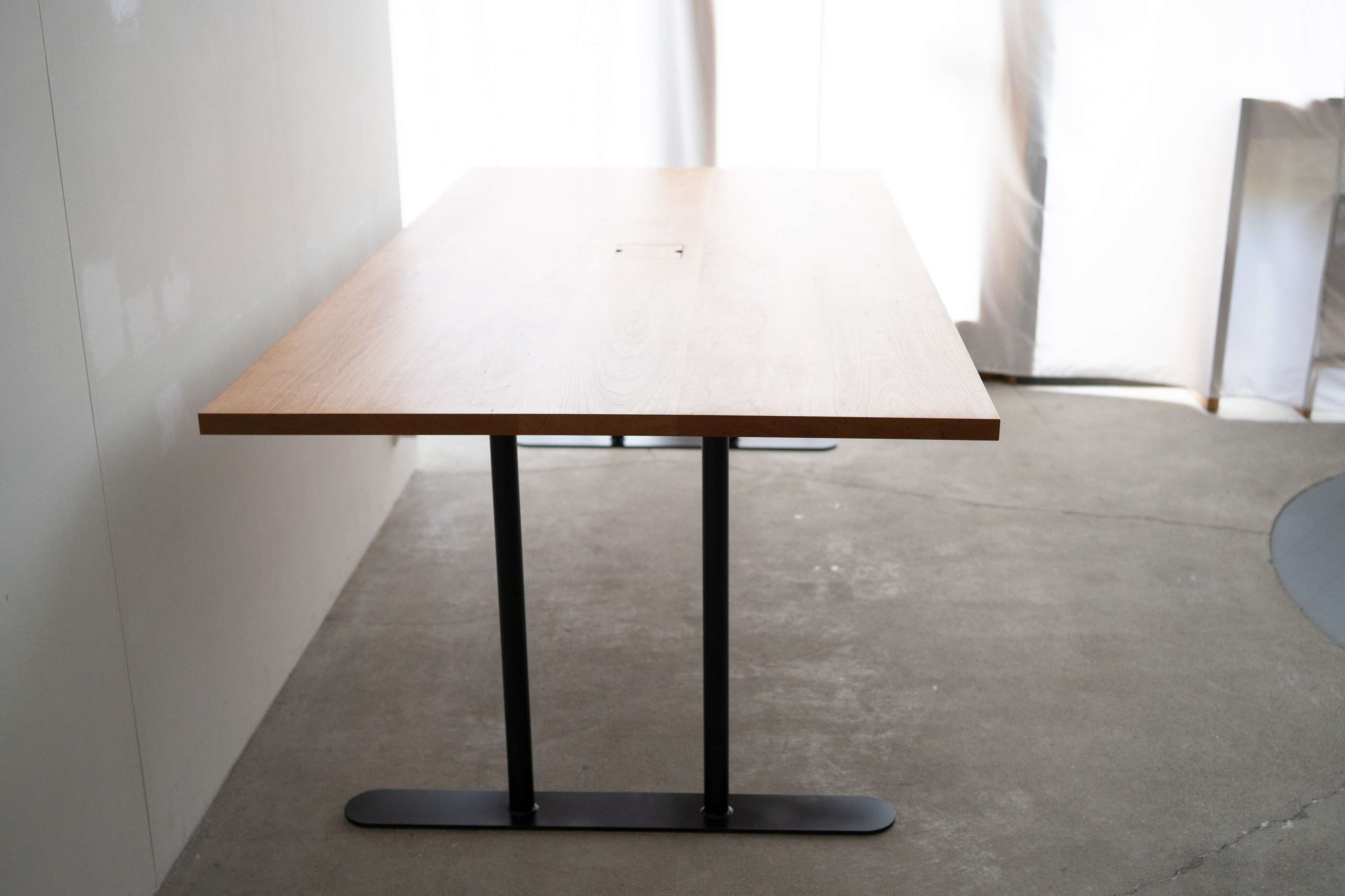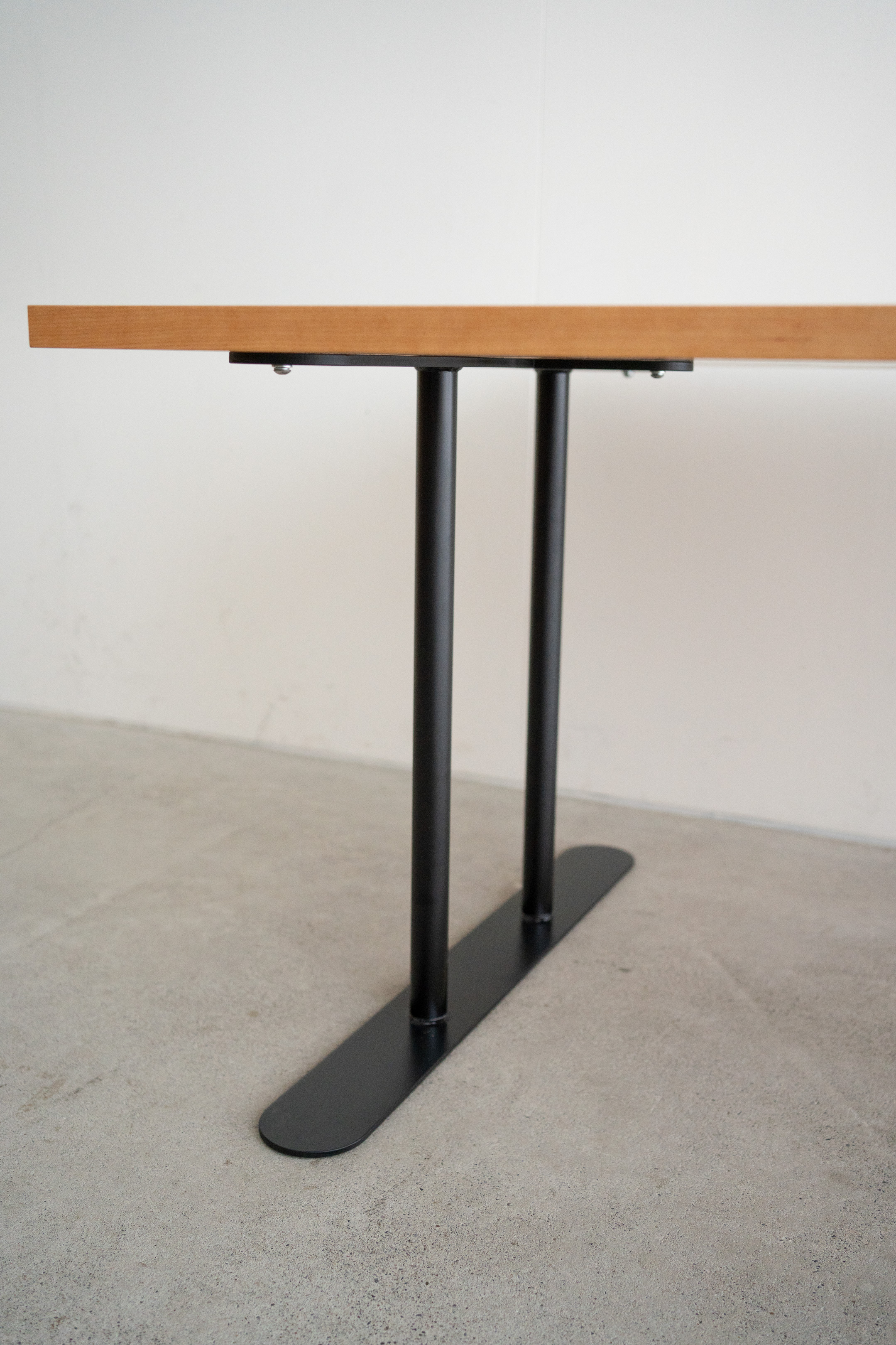 オフィスのための大きなテーブルを製作させていただきました。天板はアメリカンチェリー材。脚部はスチール製のH型のパイプレッグスです。