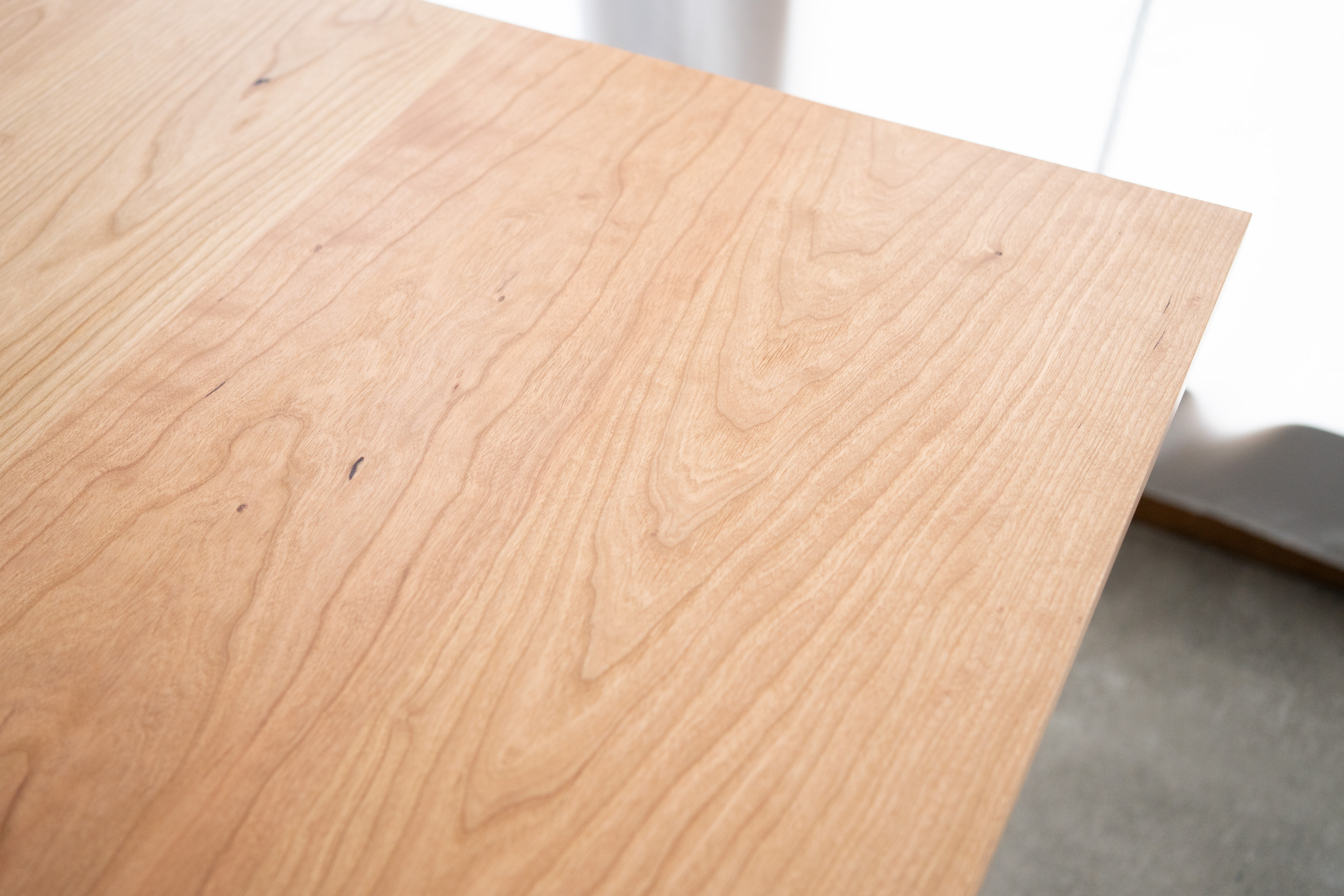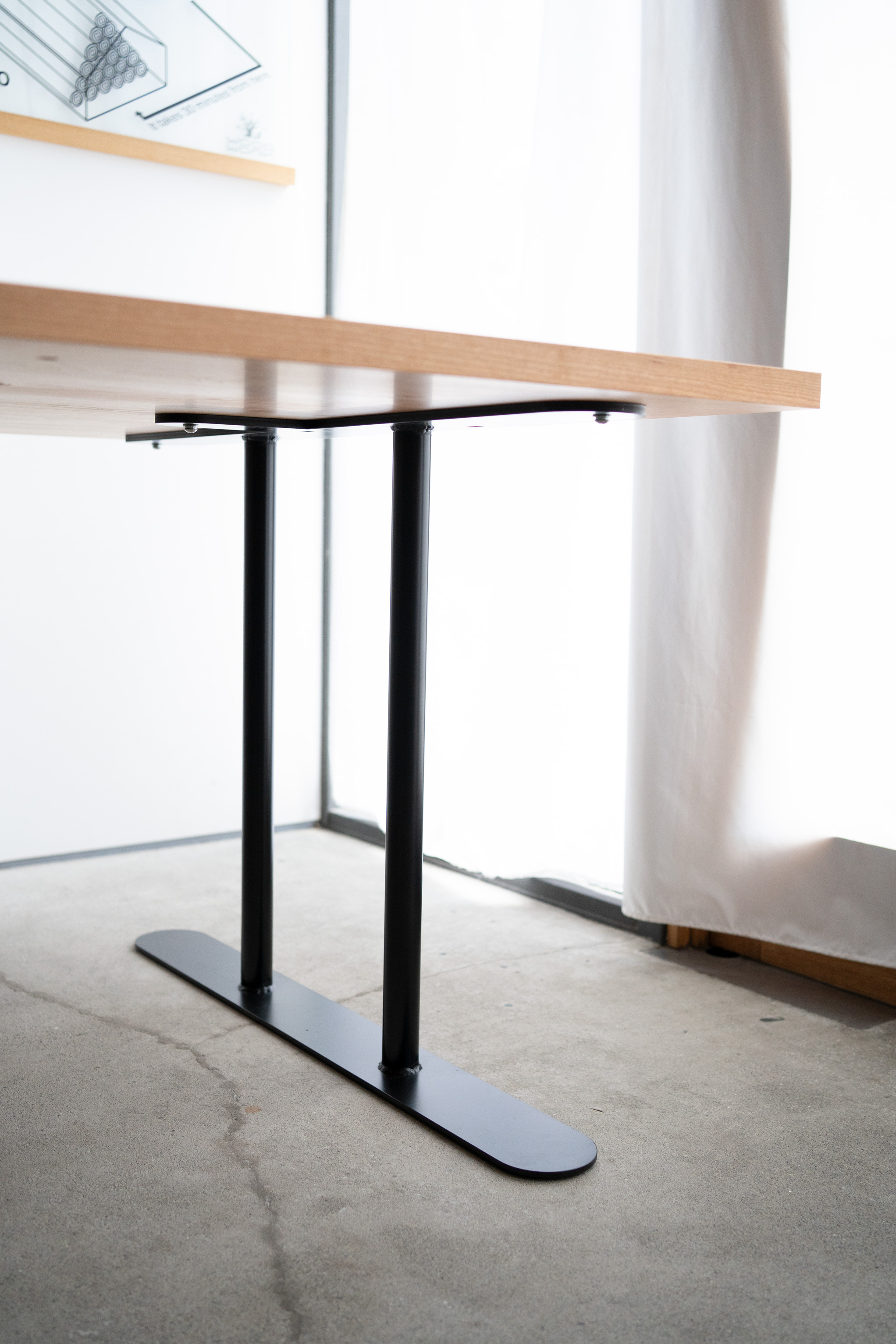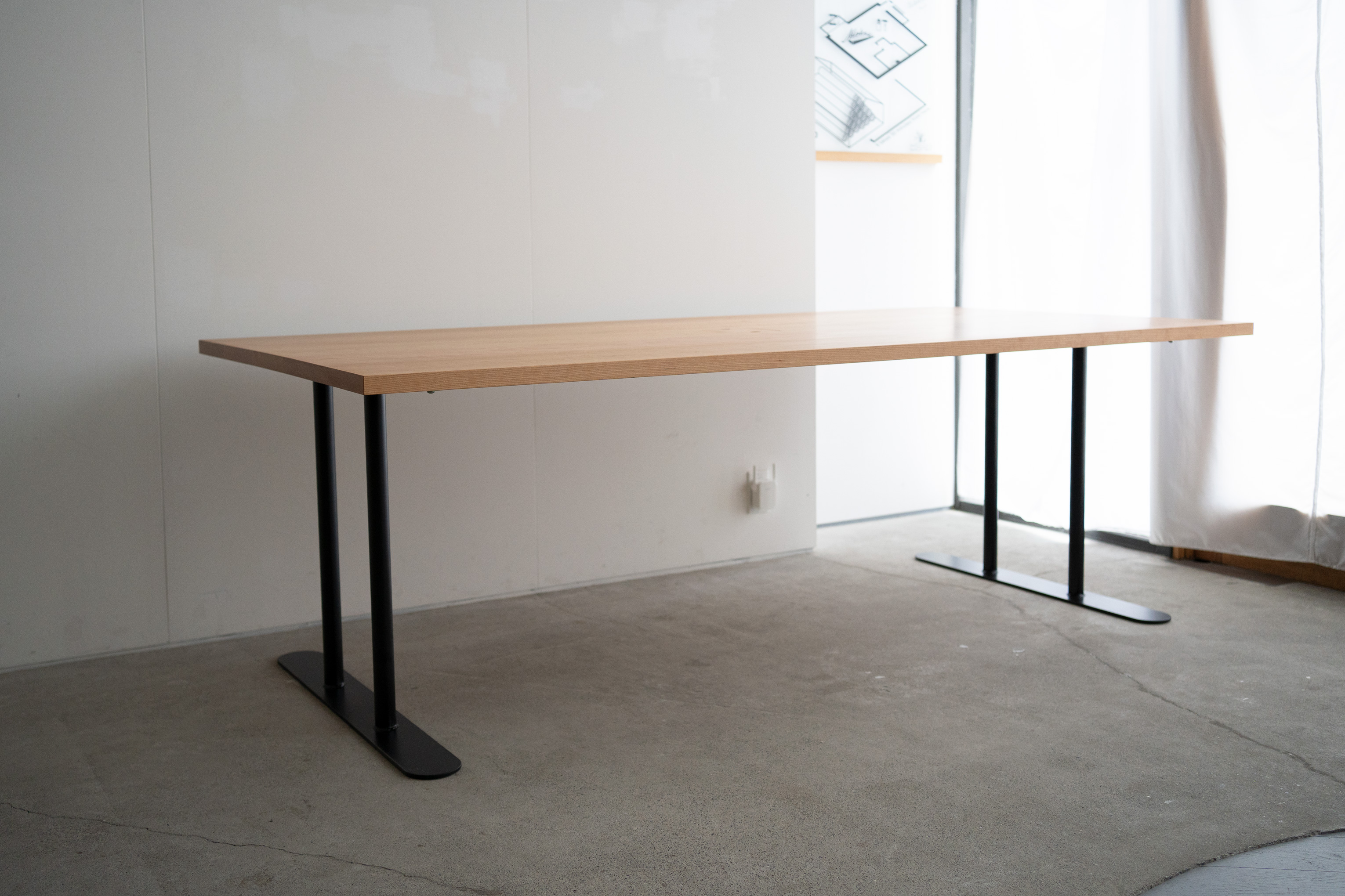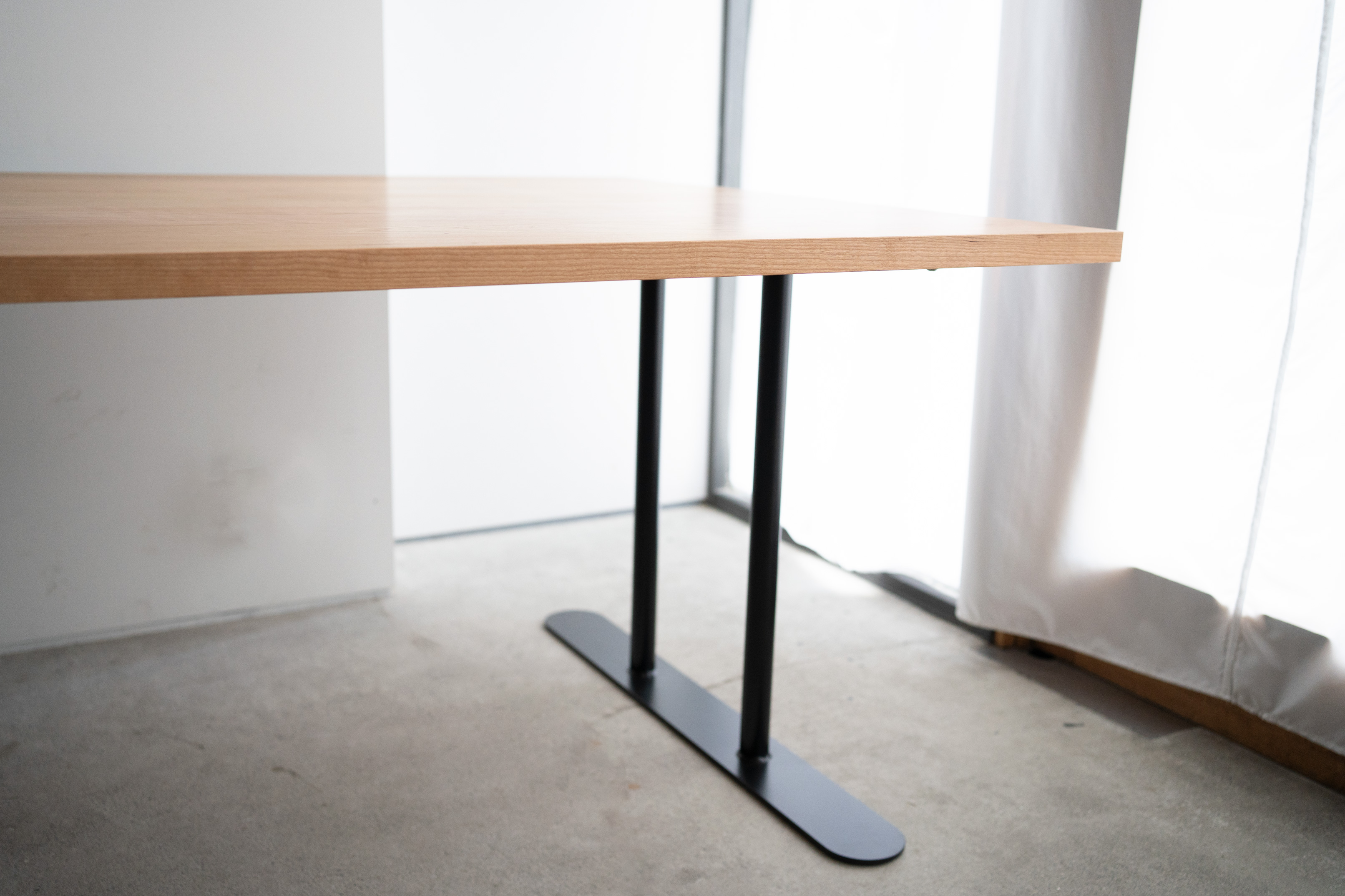 オフィスのための大きなテーブルを製作させていただきました。天板はアメリカンチェリー材。脚部はスチール製のH型のパイプレッグスです。