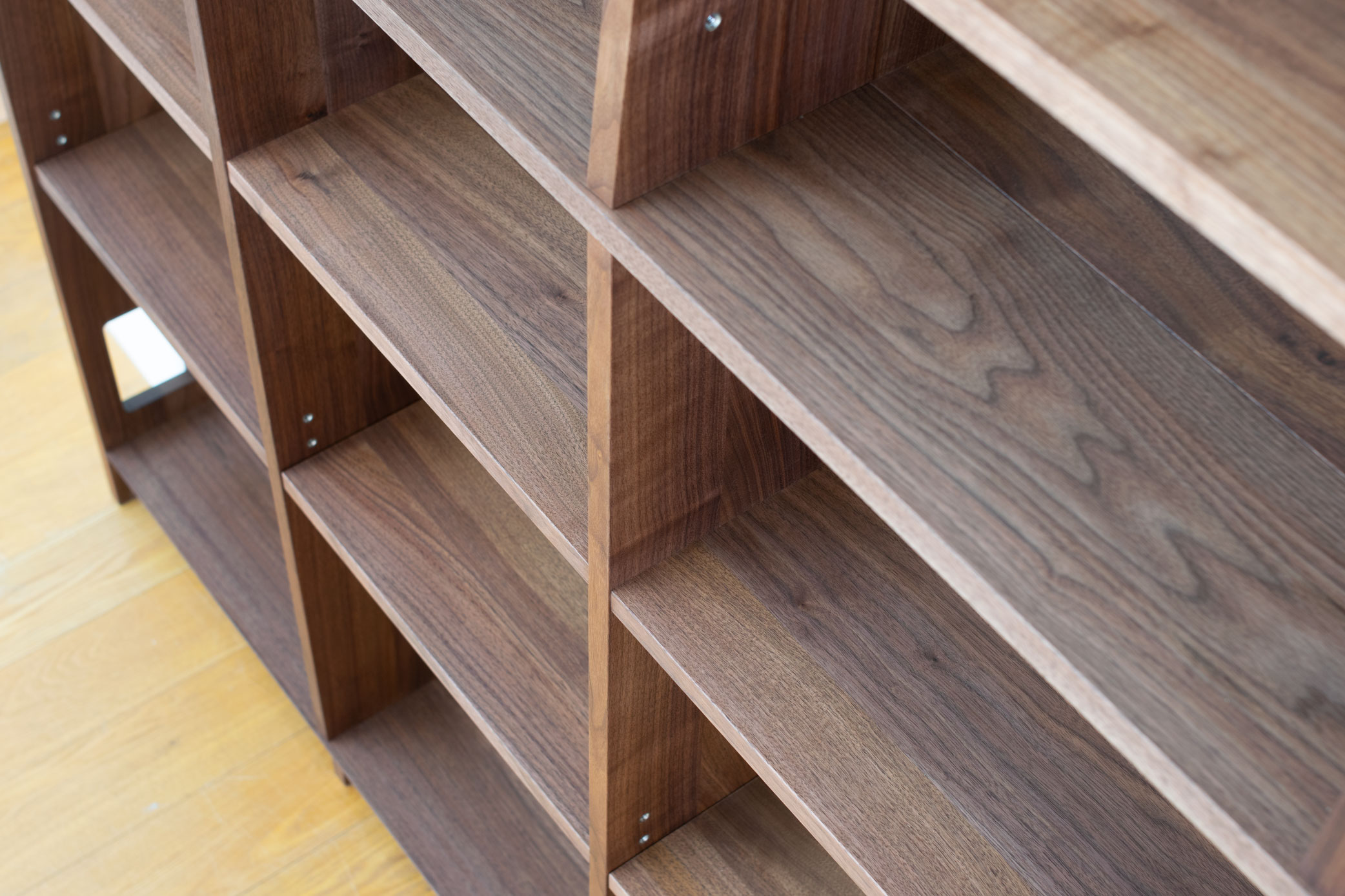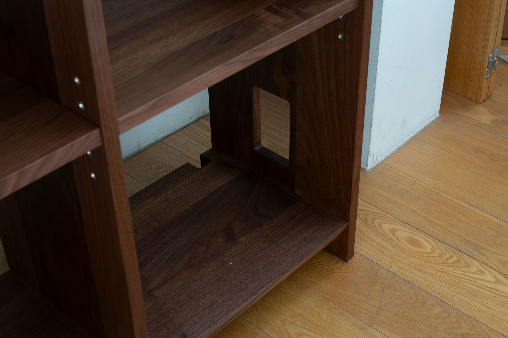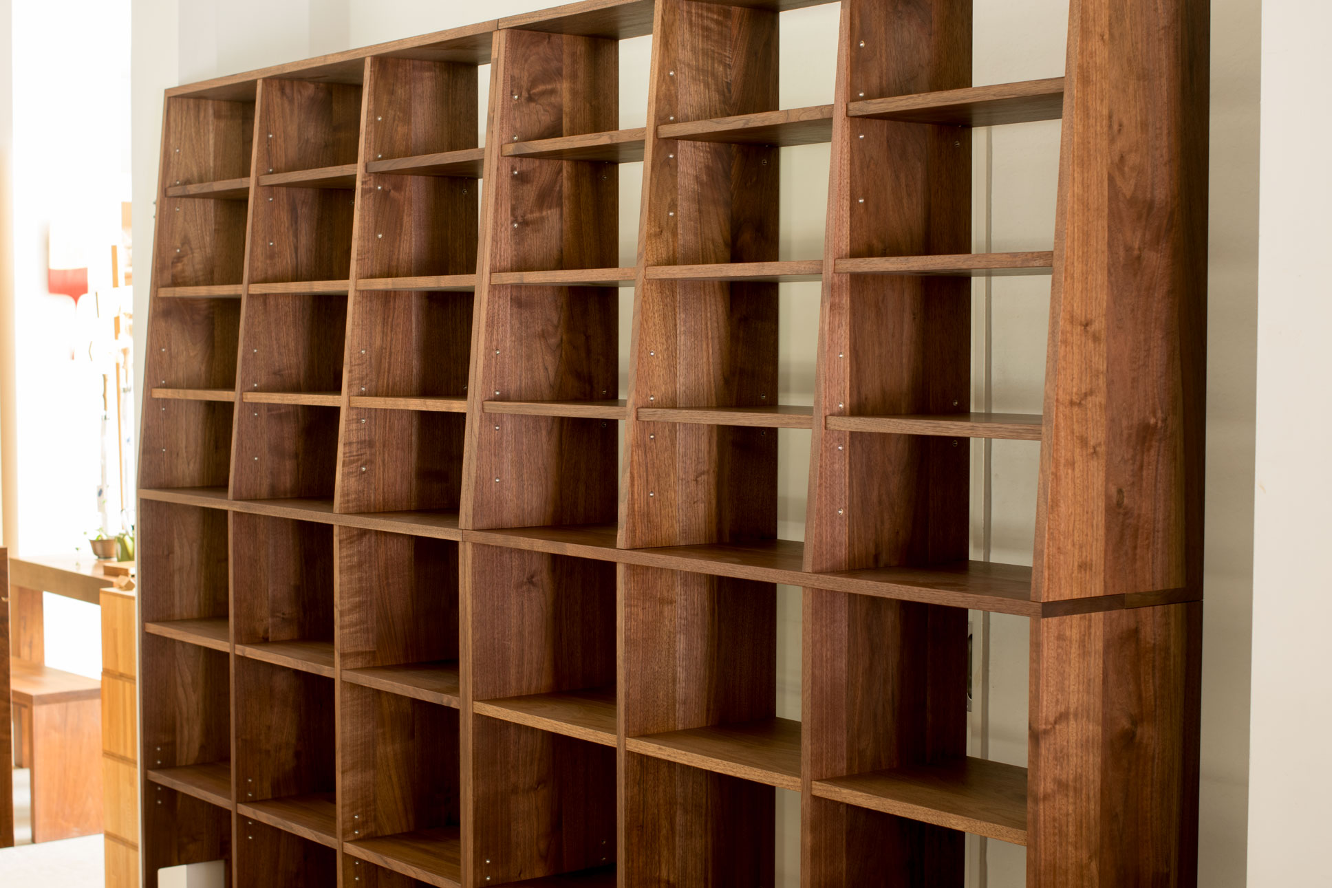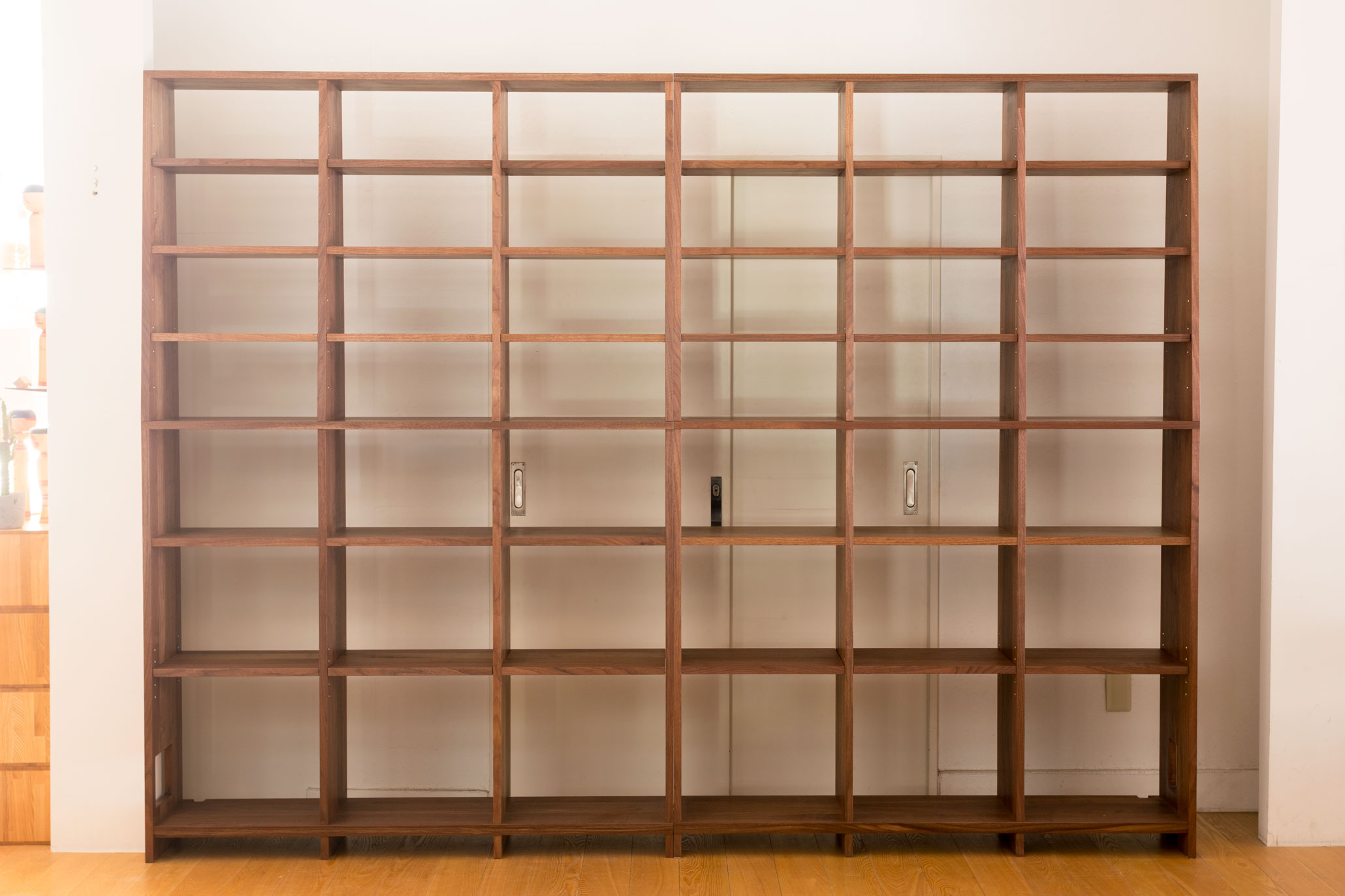 ウォールナット材で製作させていただいた壁いっぱいのTANA本棚を製作させていただきました。