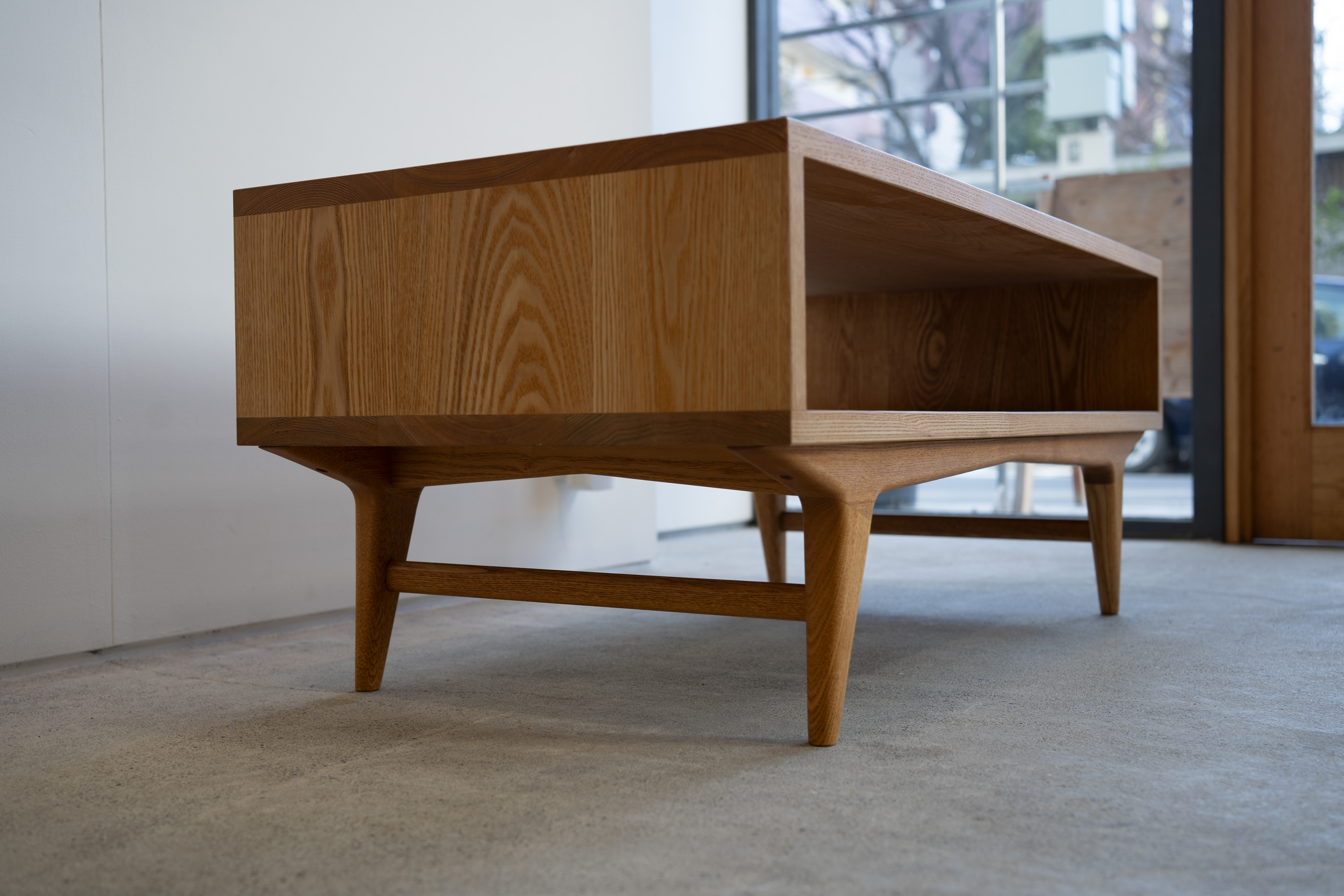 タモ材のTONE TV board を製作させていただきました。TONEシリーズの中でもいちばんコンパクトなテレビボードです。