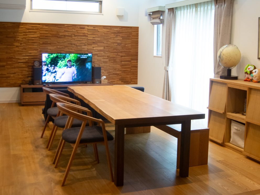 タモ一枚板天板+フォーレッグス、ダイニングテーブル