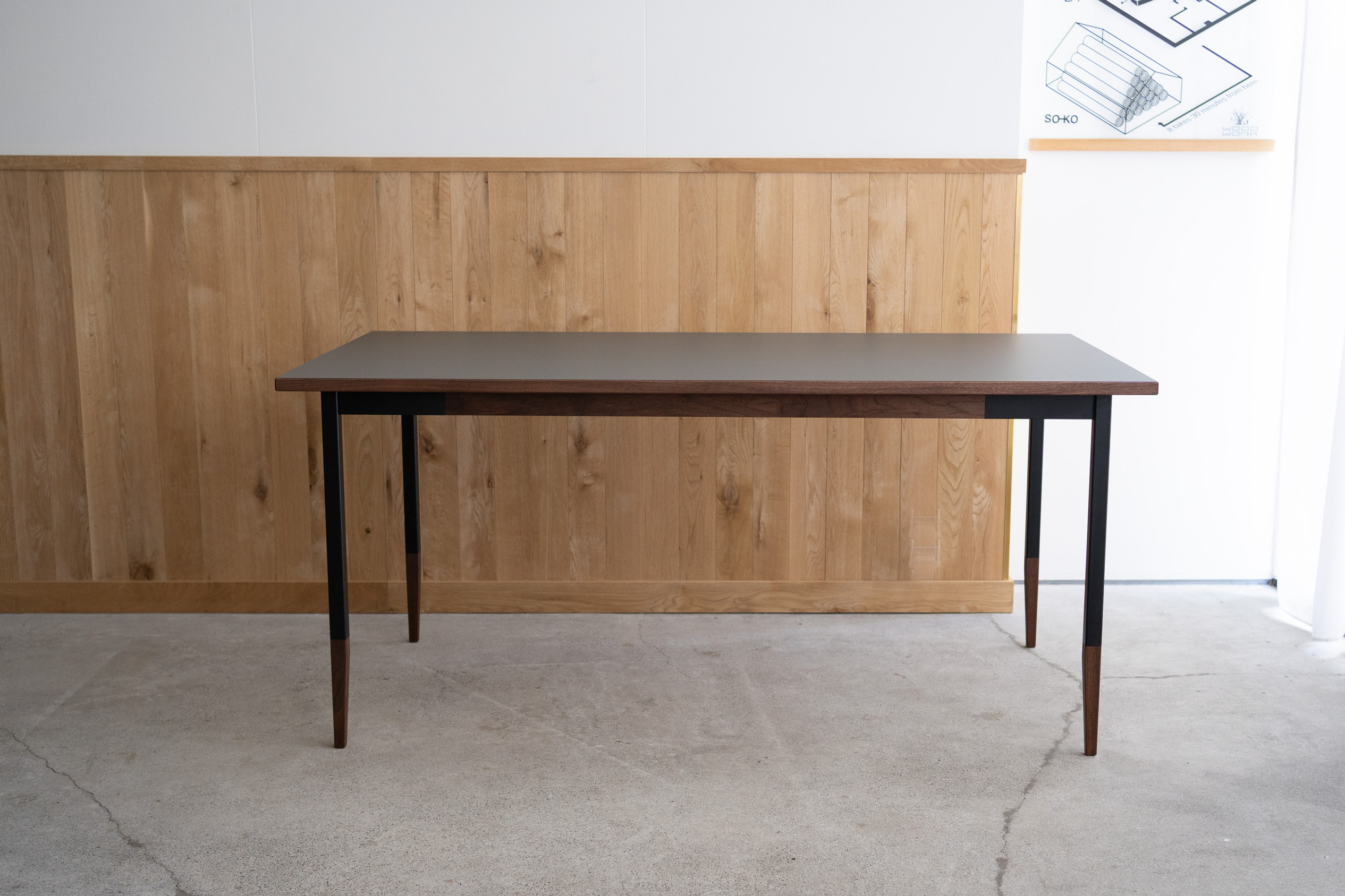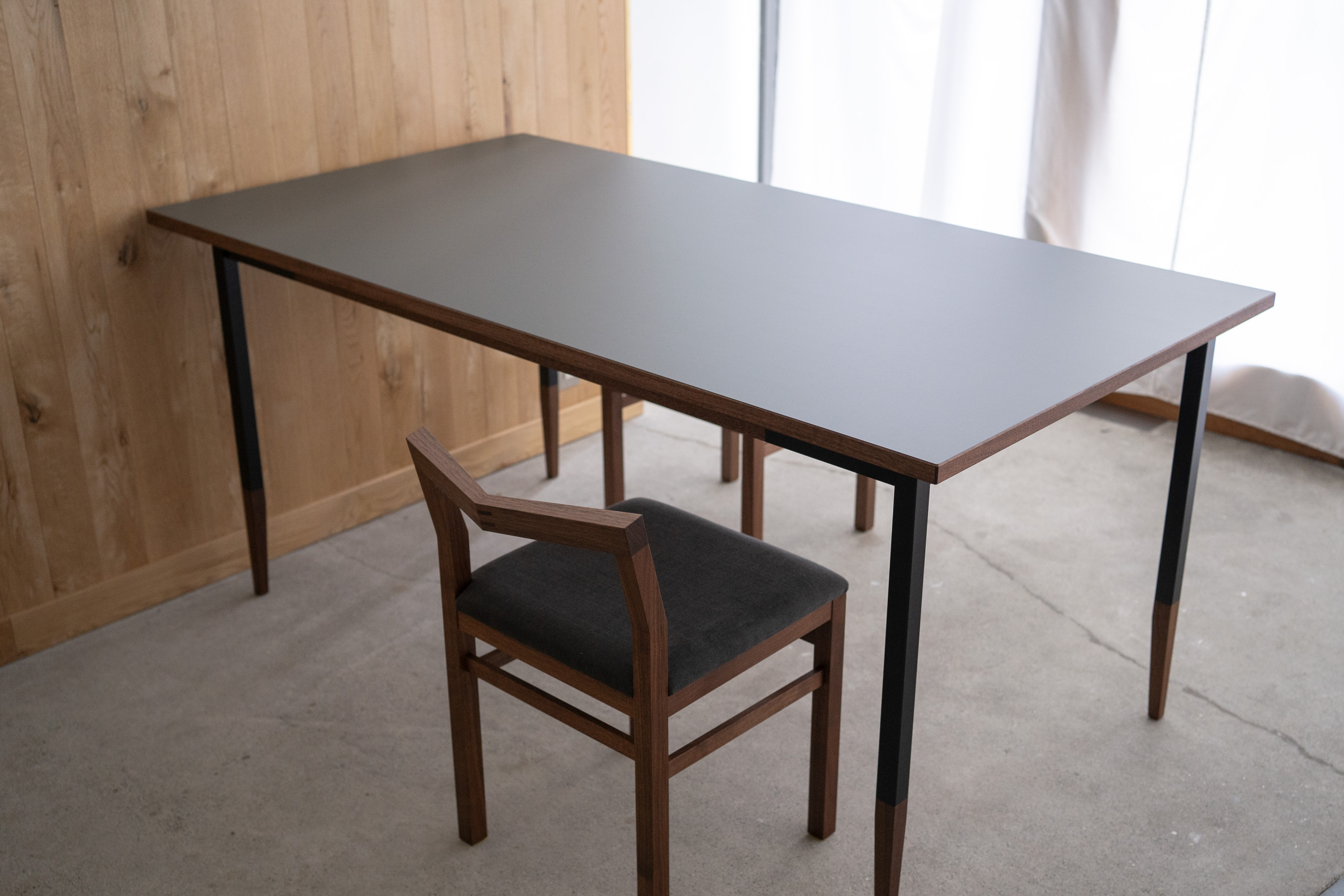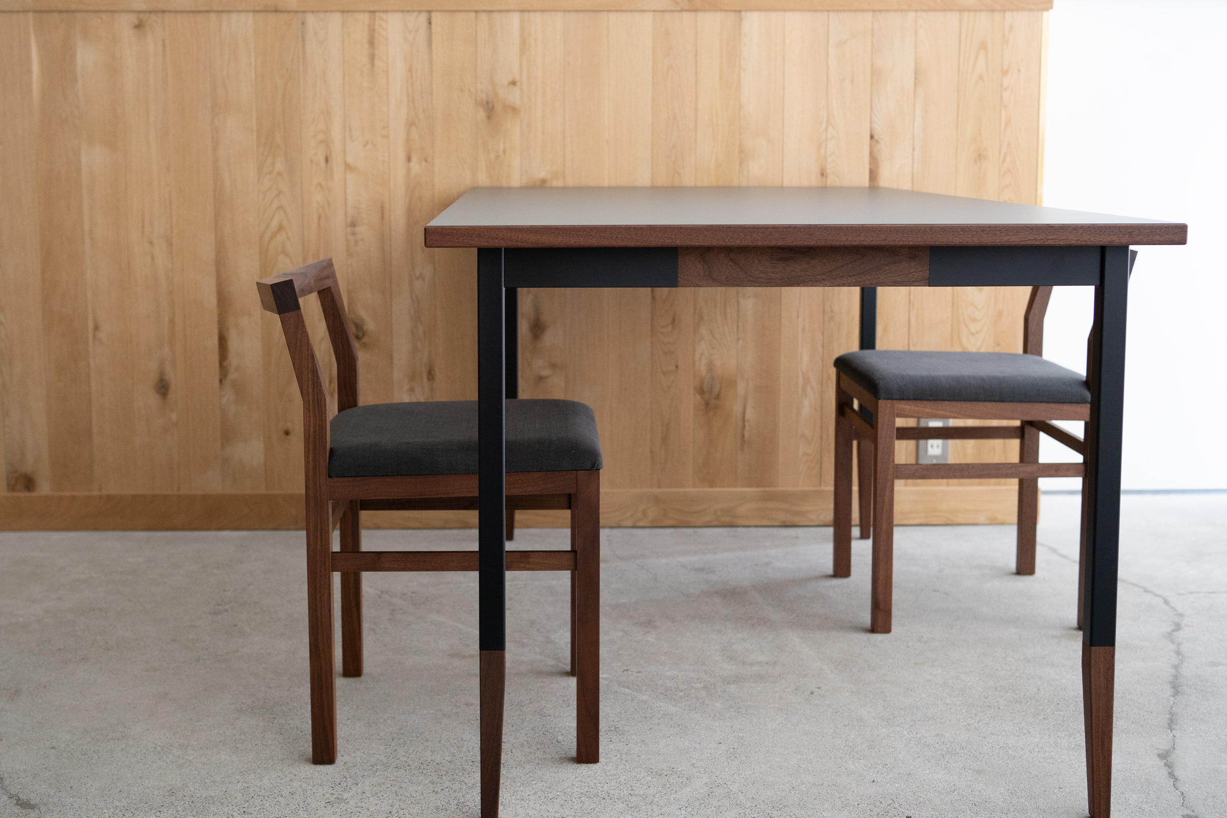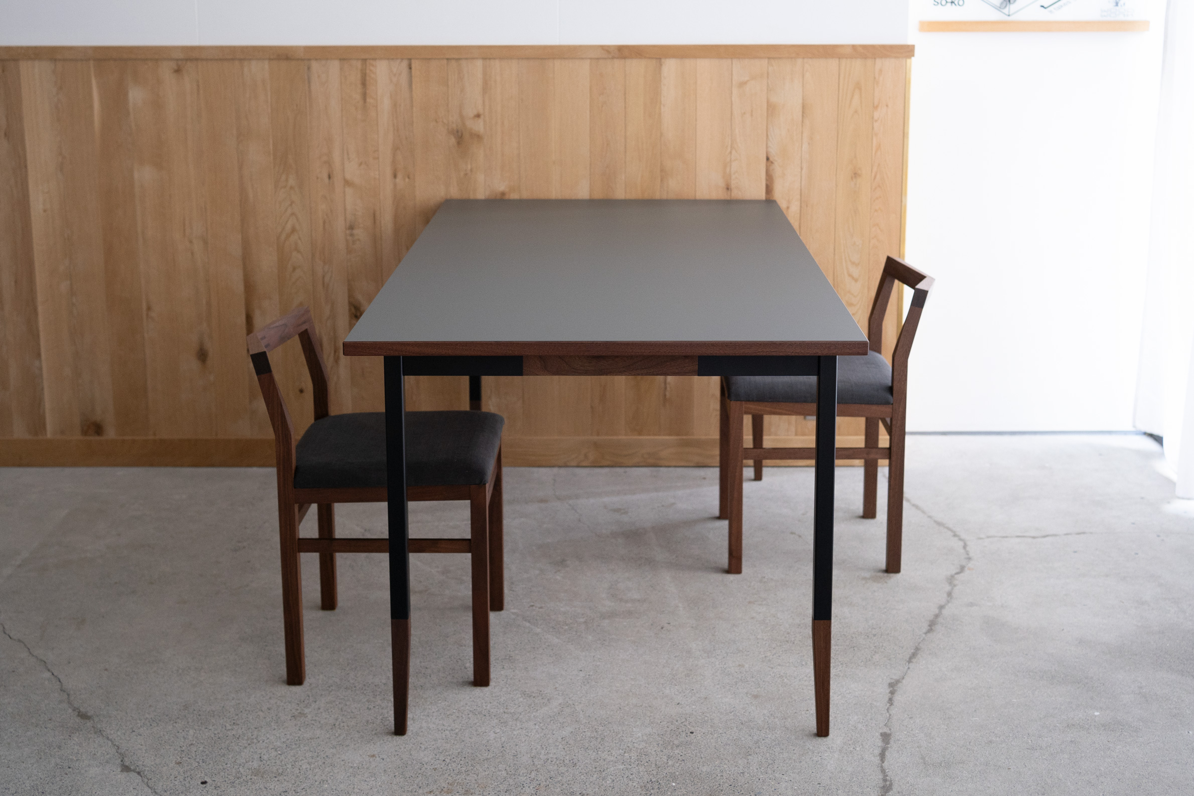 ウォールナットとグレー系でで統一されているので、後から椅子やベンチを追加しても主張しすぎず、空間の程よいアクセントとして馴染んでくれます。長く使う中で、組み合わせの楽しみが広がるダイニングテーブルです。色や素材を自由に選べるぶん、迷ってしまう方も多いと思います。