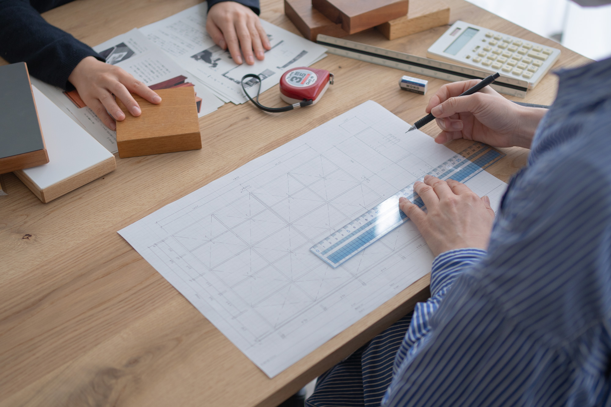 素材、デザイン、仕様を確認しながら変更に応じてラフプラン作成とお見積りを重ねます。