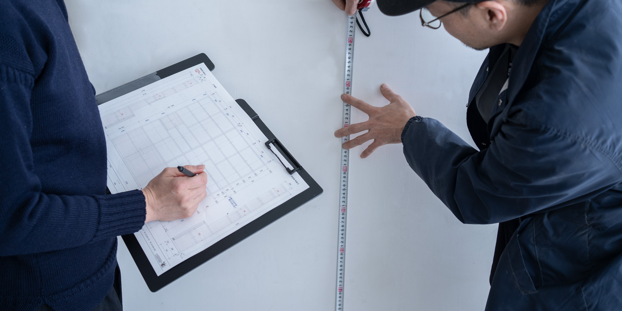 現地確認が必要な場合には、設置場所までお伺いし1㎜単位で採寸いたします。
